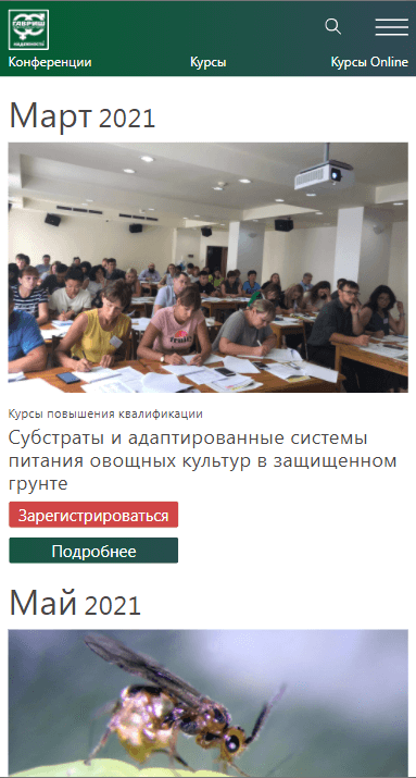 Также на платформе предусмотрены разделы для размещения публикаций об уже прошедших мероприятиях, видеоотзывов, биографий преподавателей.