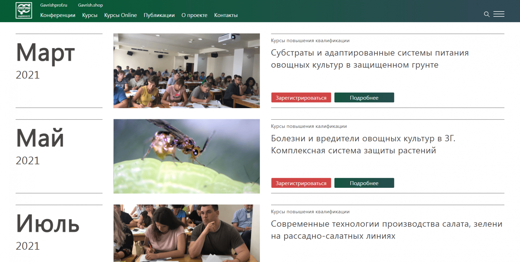 Сайт Gavrish.school представляет собой платформу для продажи обучающих программ компании «Гавриш. Профессиональные семена».