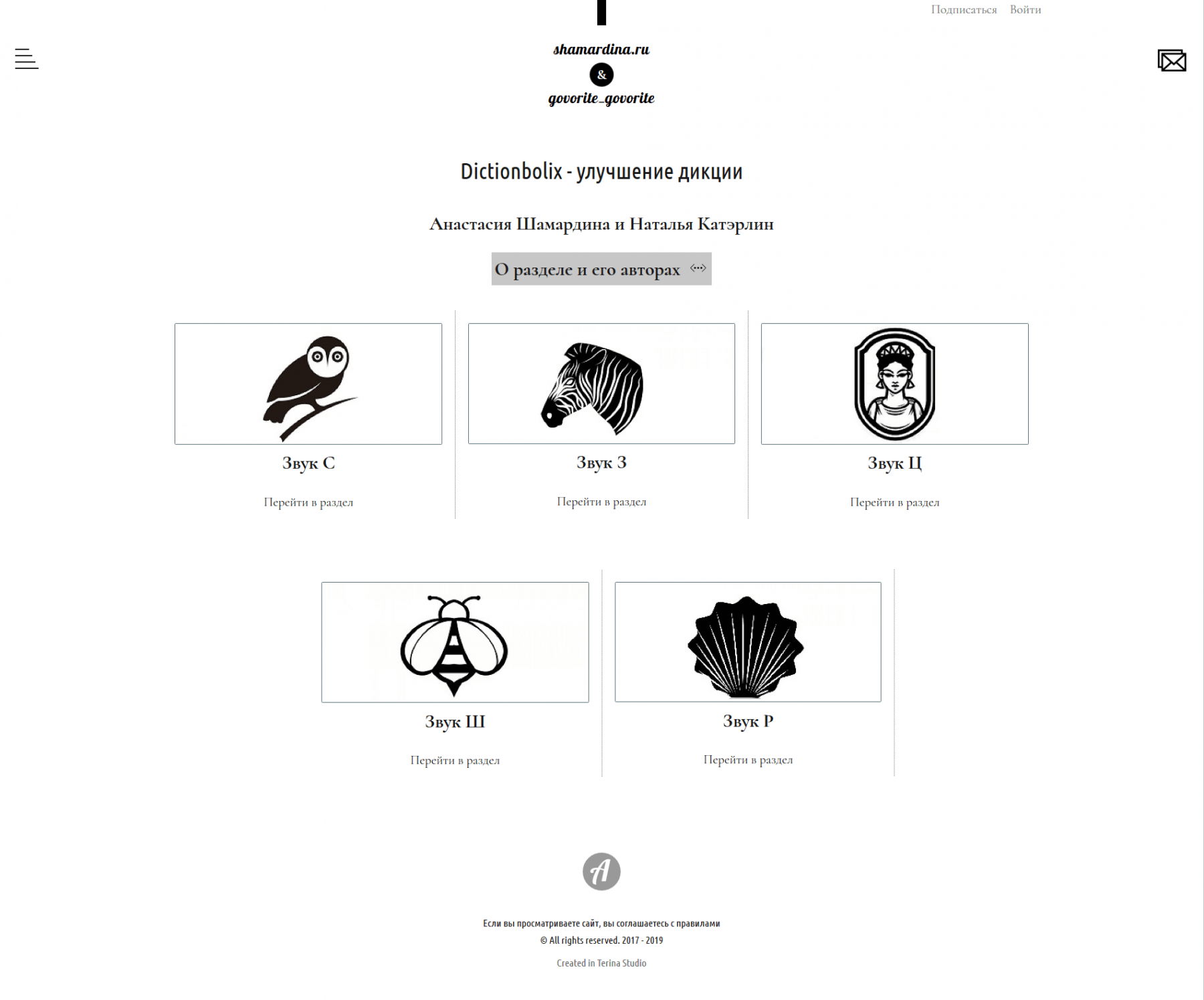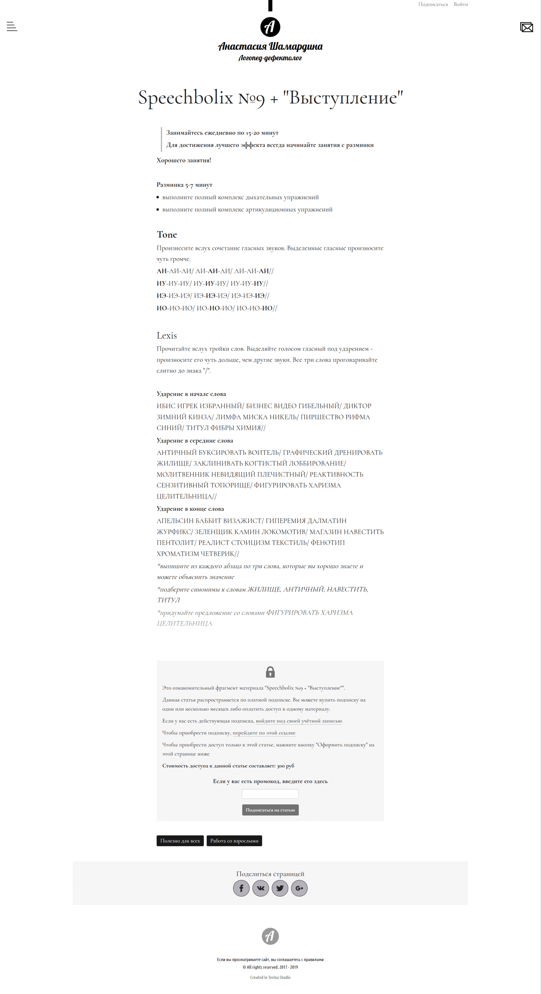 В 2019 году на сайте добавилось новое направление - Dictionbolix. В этом разделе содержатся великолепные материалы для улучшения дикции, также доступные по подписке.