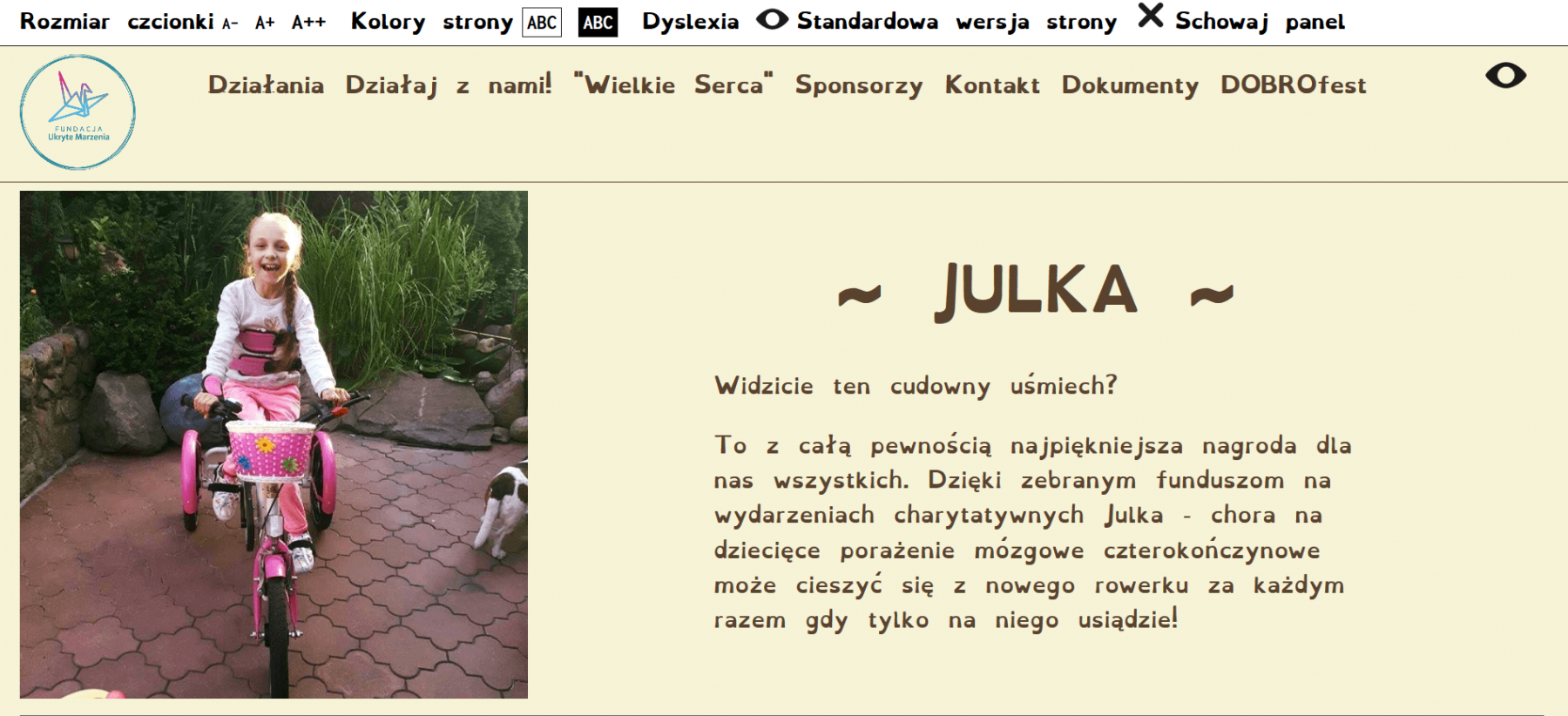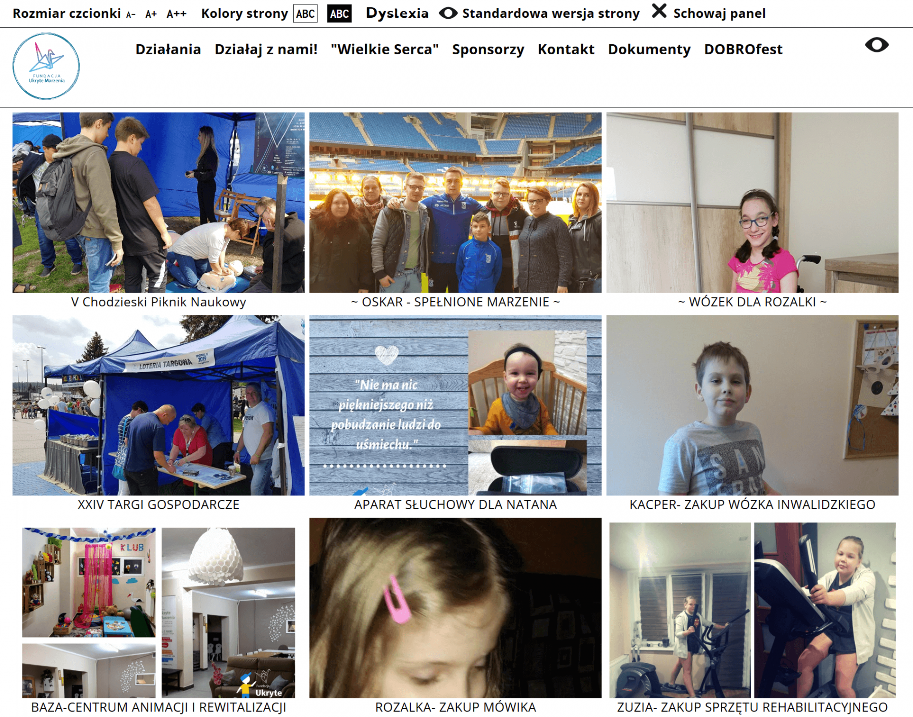 Польский благотворительный фонд "Скрытые мечты" (Ukryte Marzenia) занимается оказанием помощи "особенным" детям и взрослым людям с ограниченными возможностями, сбором средств на эту помощь и проведением благотворительных мероприятий с этой целью.