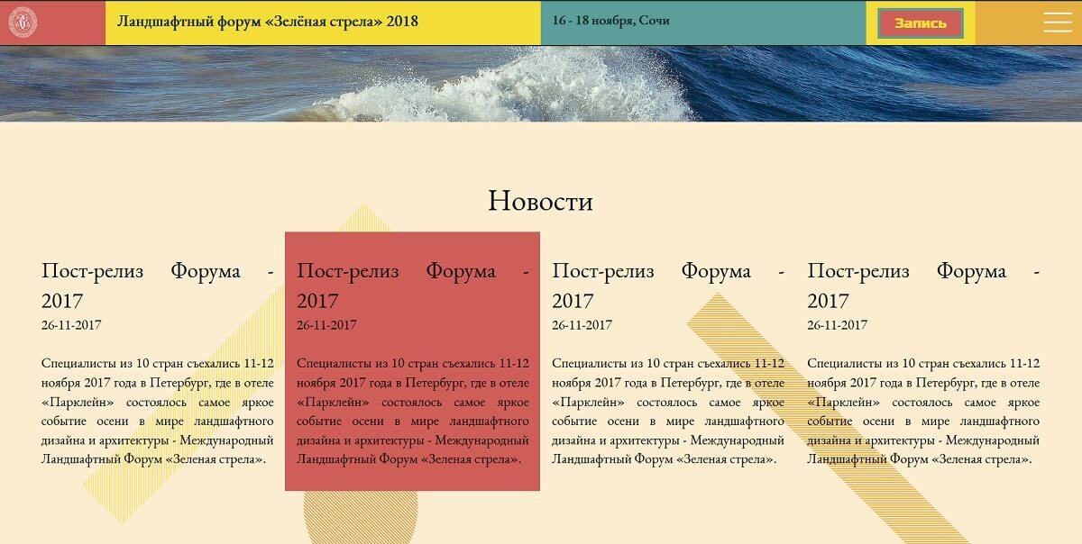 Задача: создание макета главной страницы Международного ландшафтного Форума «Зелёная стрела».