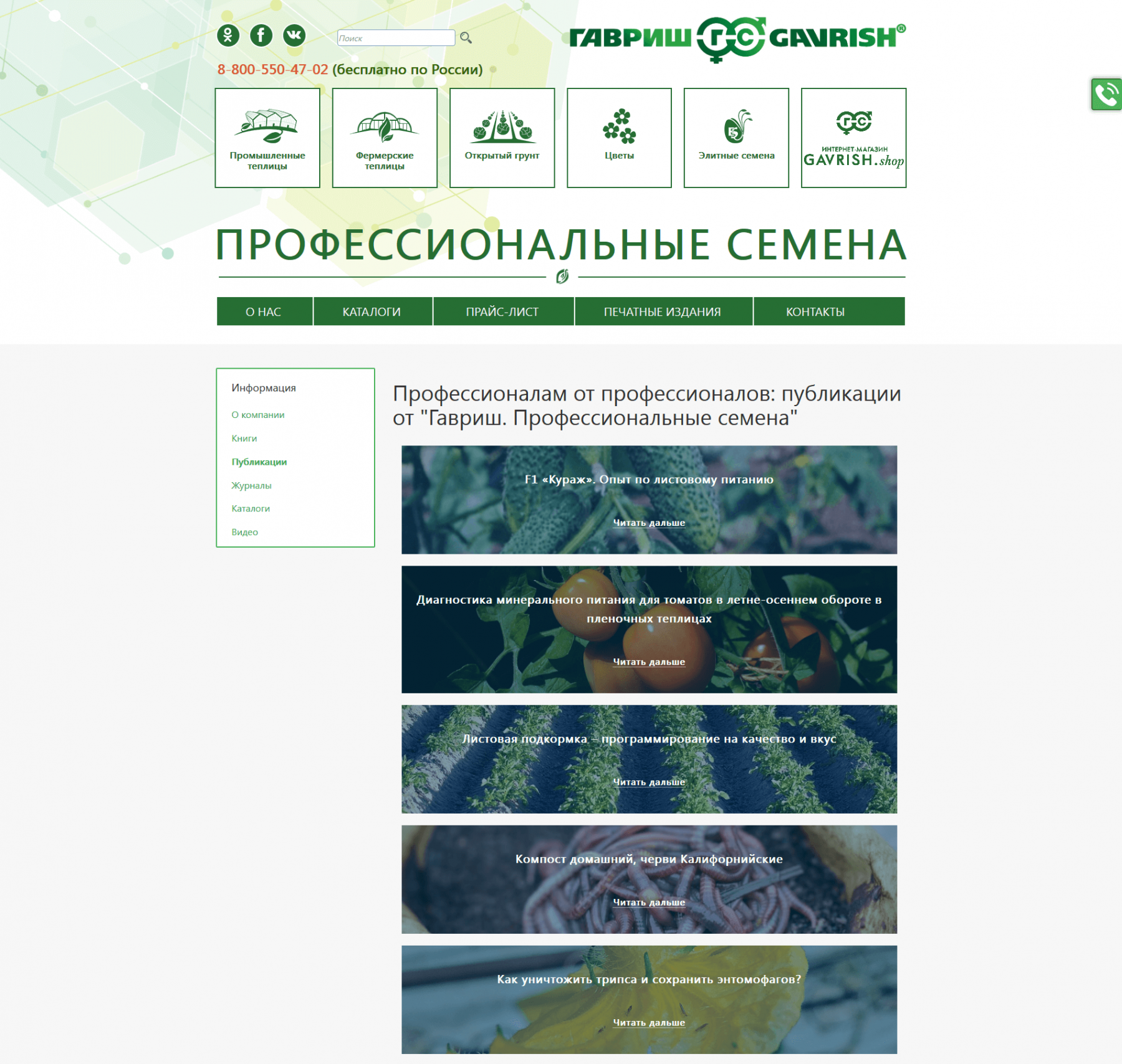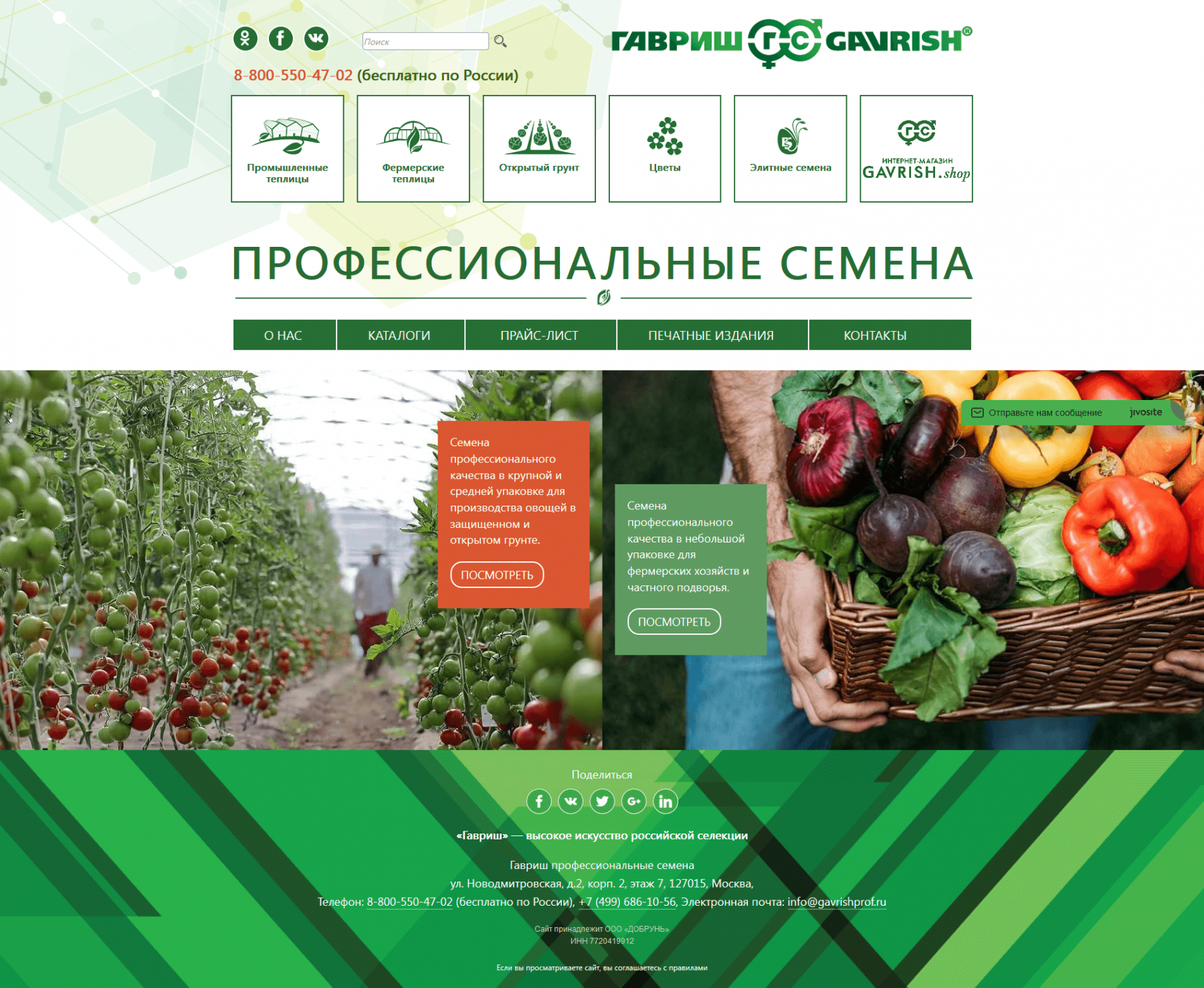 В конце 2018 года в компании «Гавриш. Профессиональные семена» был разработан новый фирменный стиль, в связи с чем в начале 2019 года был проведён редизайн сайта.