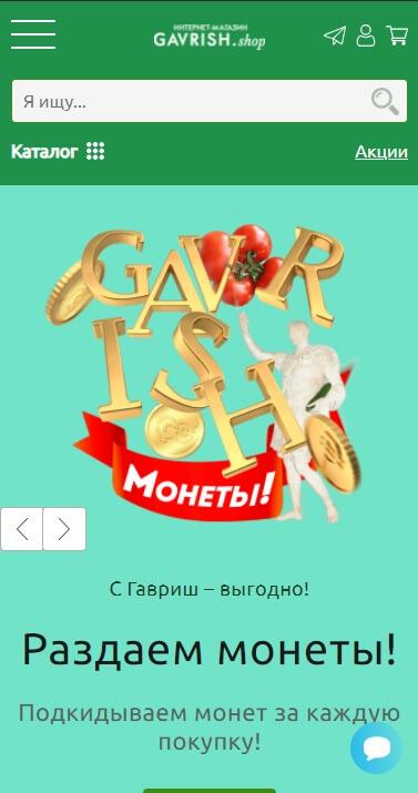 Отдельным новшеством являются "Монеты Гавриш". Они начисляются при покупке товаров, и потом ими можно оплатить до 25% стоимости заказа.