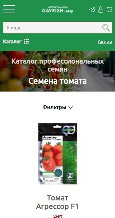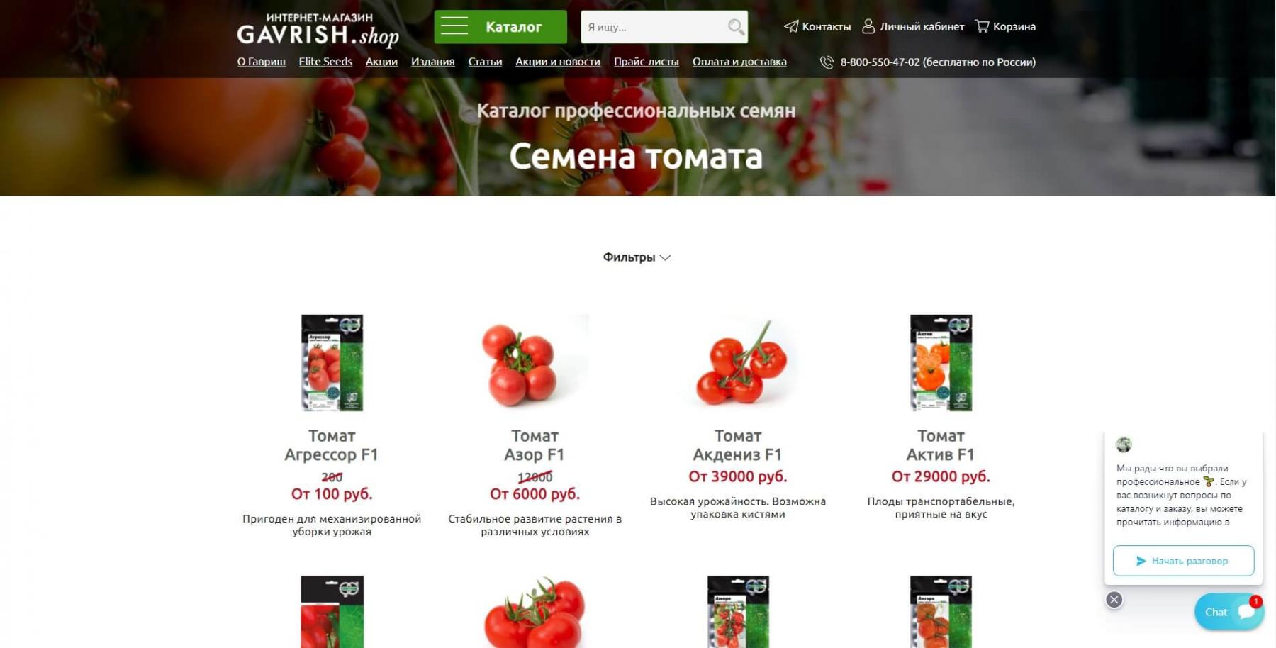 Интернет-магазин полностью отвечает современным потребностям покупателей крупнейшего в России производителя профессиональных семян Гавриш, среди которых - профессиональная аудитория (фермеры, тепличные хозяйства и т.д.) и увлеченные овощеводы, предпочитающие специальную серию "Элитные семена" (профсемена в маленьких упаковках) всем остальным предложениям.