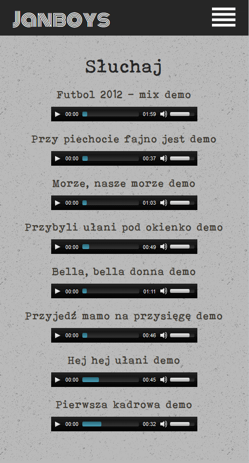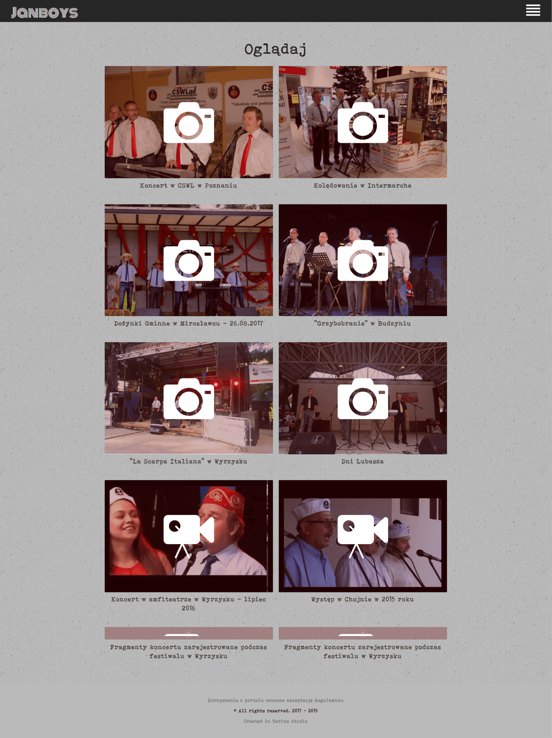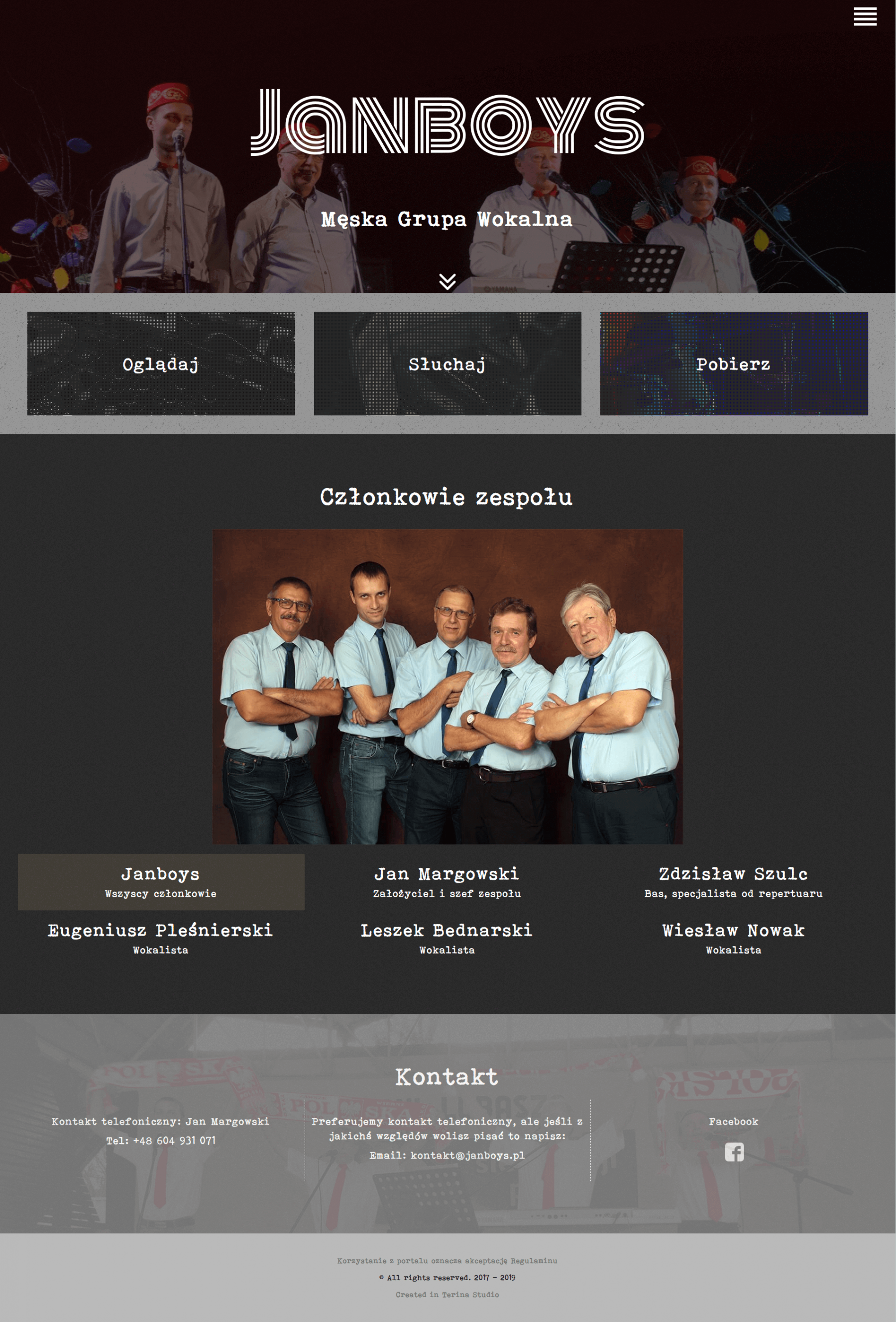 Перед нами стояла задача в лаконичной и в то же время яркой форме дать представление о группе, о её участниках, сделать удобным прослушивание демо-версий песен и просмотр фото и видео выступлений музыкантов, а также передать творческое настроение, присущее всем артистам Janboys.