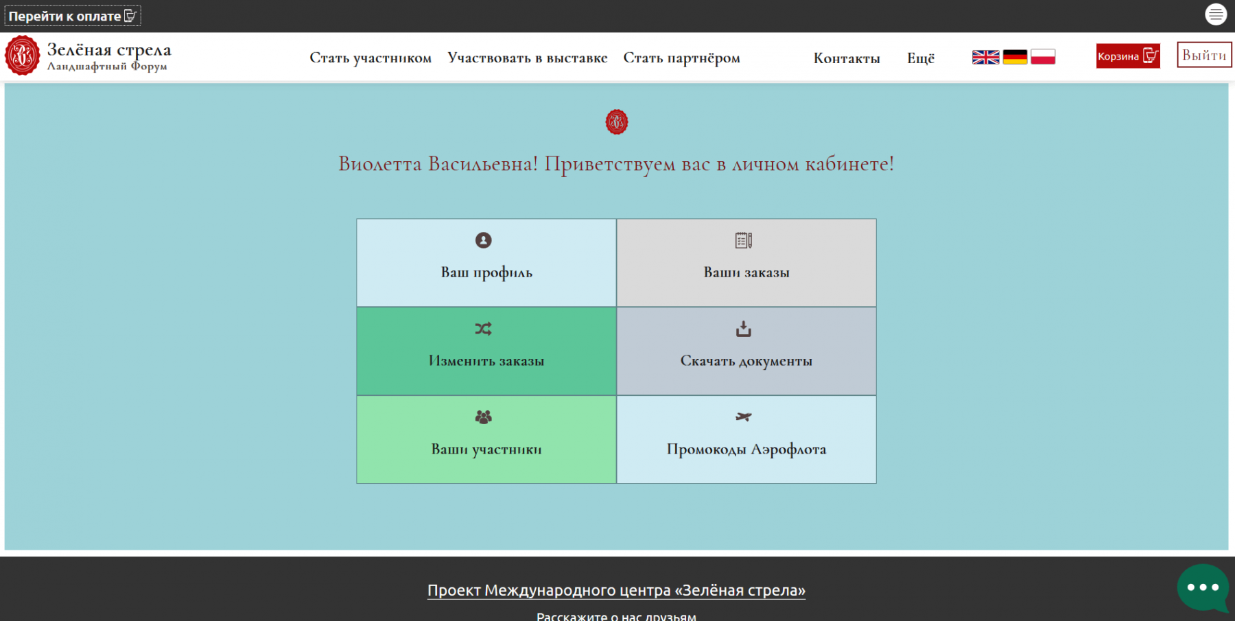 Также для общения с представителем оргкомитета были созданы удобные формы заявки и отслеживание её статуса.