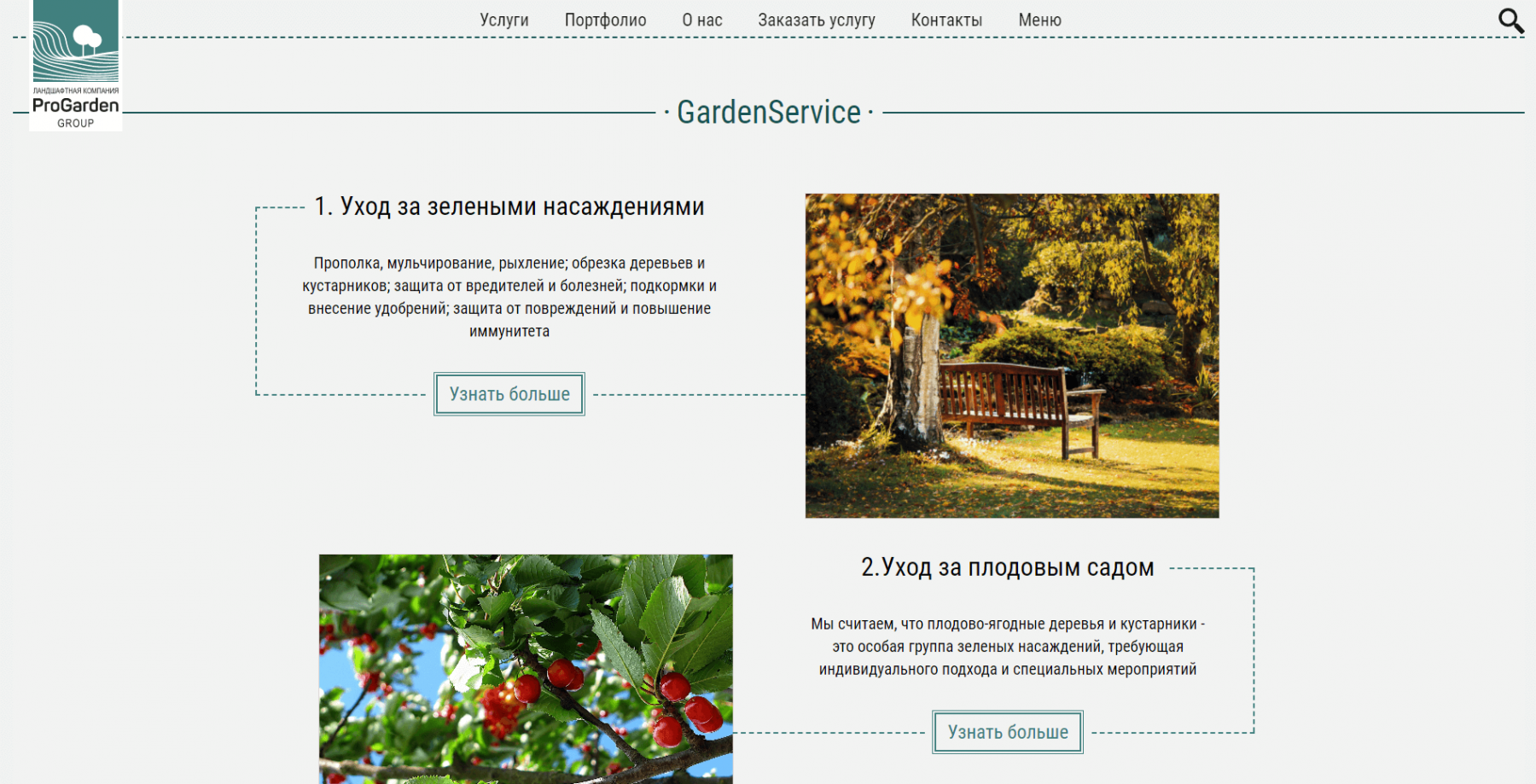 Студией Terina Studio был разработан дизайн и концепт сайта ProGarden Group.