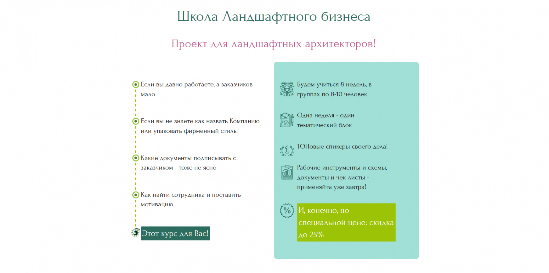Школа ландшафтного бизнеса - это онлайн-курс, разработанный для тех, кто хотел бы создать и развить собственный бизнес в области ландшафтного дизайна.