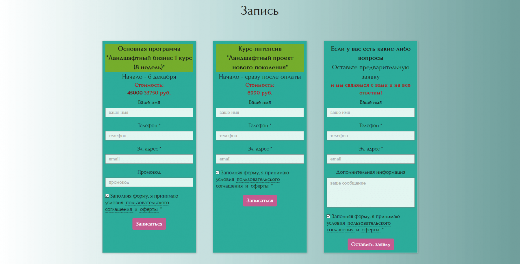 Созданная специалистами Terina Studio страница подробно рассказывает о преимуществах курса, программе и знакомит с преподавателями. Также на сайте можно записаться на программу и оплатить её.