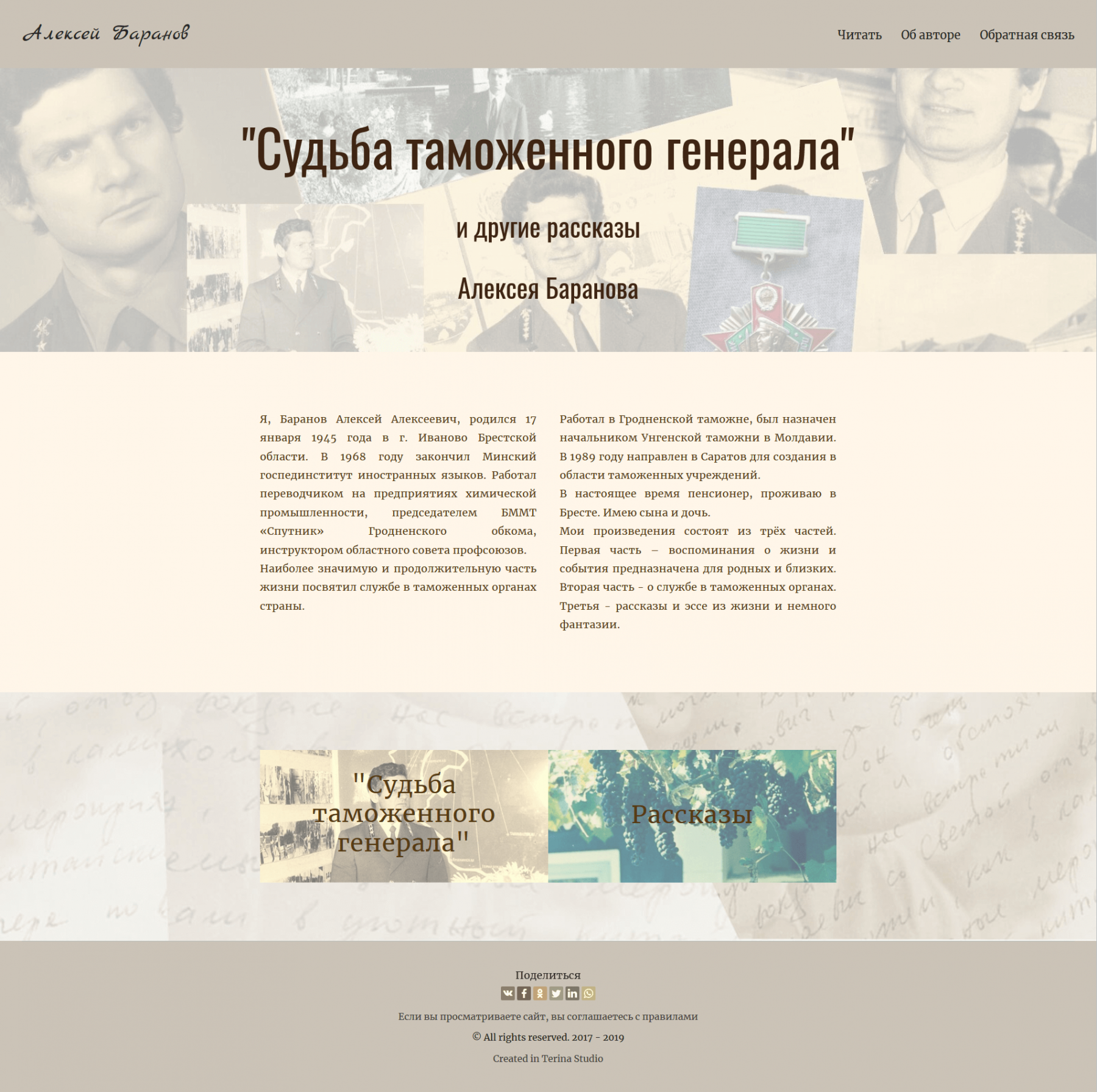 Сайт представляет собой сборник литературных произведений, а потому и задумали мы его как книгу. Дизайн и функционал сайта очень напоминают бумажное издание по своей вёрстке и структуре.